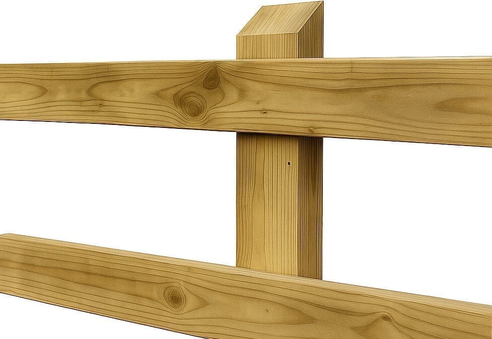 Dit is de meest gebruikte afstand bij houten weideomheiningen: stevig genoeg om de liggers perfect te ondersteunen en tegelijk economisch in materiaalgebruik.